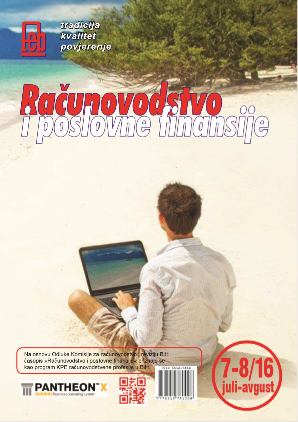 S A D R Ž A J 1. Sanela Agačević, dipl. oec Provedba Opšteg kolektivnog ugovora 2. Fuad Balta, dipl. oec Naknade troškova službenog putovanja 3. Dr. sc. Jozo Piljić Računovodstveni i porezni tretman lizinga 4. Sanela Agačević, dipl. oec Troškovi rezervisanja po Novom Zakonu o porezu na dobit 5. Slavica Vujić, dipl. oec […]