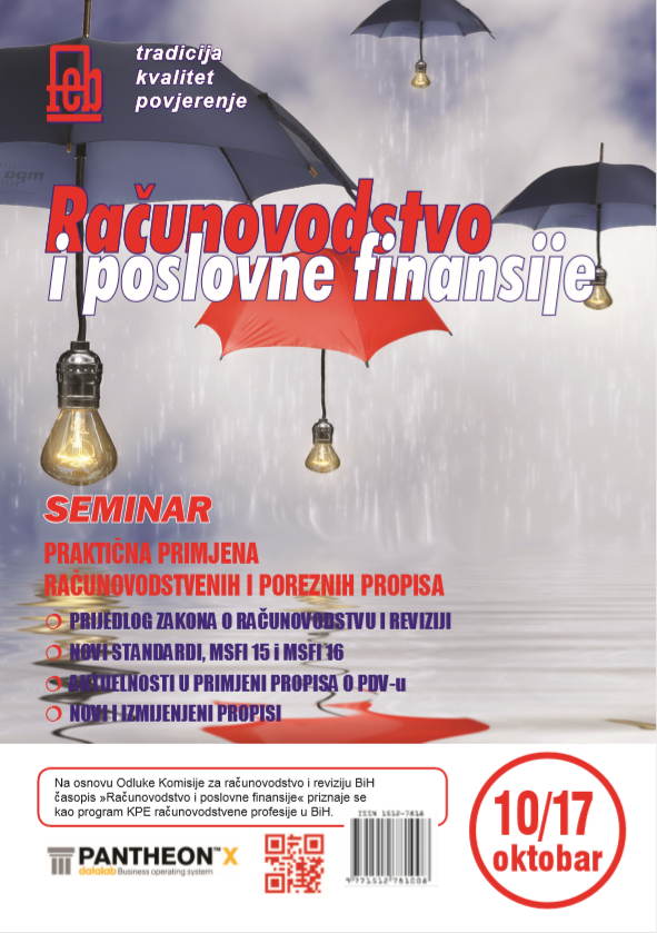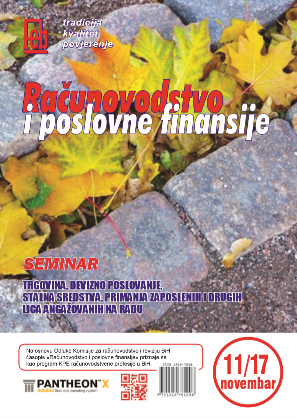 ELEKTRONSKI ČASOPIS S A D R Ž A J Federalno ministarstvo finansija/financija Objašnjenje o izradi i predaji finansijskih izvještaja po polugodišnjem obračunu za period I-VI 2018. godine Fuad Balta Obrt – osnivanje, registracija, oporezivanje i likvidacija Prilikom donošenja odluke o obavljanju određene vrste djelatnosti potrebno je poznavati osnovne elemente propisa o obrtu, konkretnoj djelatnosti koja […]