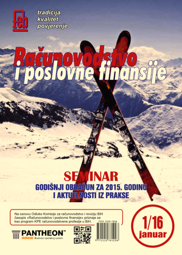 S A D R Ž A J 1. Mr. Sanela Agačević, dipl. oec Ugovori o izgradnji (MRS 11) 2. Jasenko Hadžiahmetović, dipl. oec Način izvršavanja međubankarskih platnih transakcija preko dva platna sistema kojima upravlja CBBiH 3. Dr. sc. Dinka Antić Zakon o poreznom sistemu RS 4. Dr. sc. Jozo Piljić Reverse-charge model sustava poreza na […]