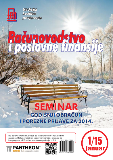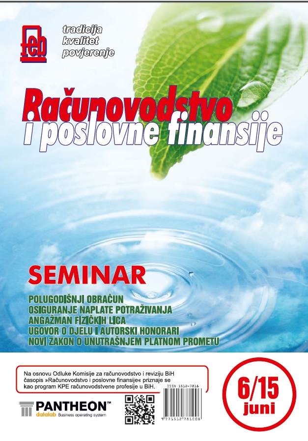 S A D R Ž A J 1. Autor: Mr Edin Glogić dipl. oec Naziv članka: Računovodstveno obuhvatanje poljoprivede Računovodstvo poljoprivrede predstavlja specifičan oblik računovodstva. Zadatak računovodstva poljoprivrede je da identifikuje specifičnosti poljoprivredne djelatnosti (poljoprivredna proizvodnja, tov stoke, proizvodnja mlijeka, mesa, voća, povrća itd.) i da podatke o specifičnostima pretvori u računovodstvene informacije. Djelatnost poljoprivrede […]